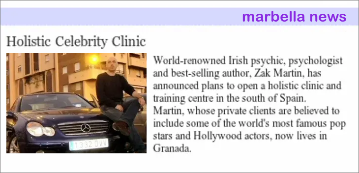 Zak Martin now resides in Granada, where he runs a private holistic clinic and heads Spain's largest network of holistic practitioners. He is also CEO of Granada Properties, a real estate agency specializing in luxury properties in Granada and the Costa Tropical.